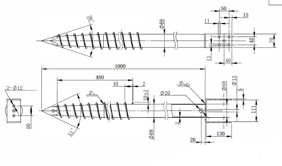 Talajcsavar U - befogással 68x1000 - 111 mm befogás