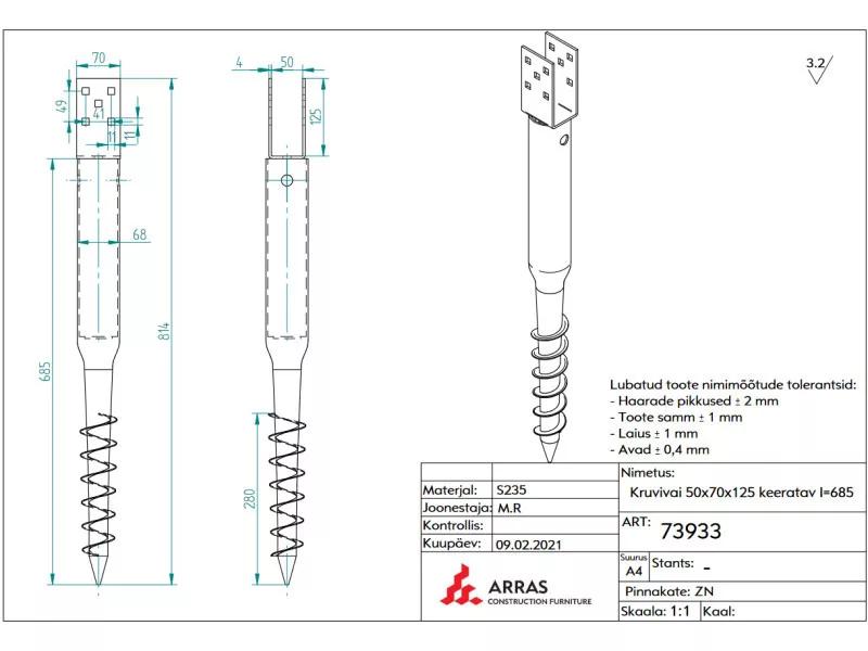 Talajcsavar U - befogással 68x685 - 50 mm befogás