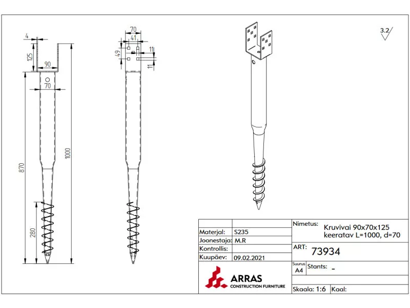 Talajcsavar U - befogással 70x1000 - 90 mm befogás