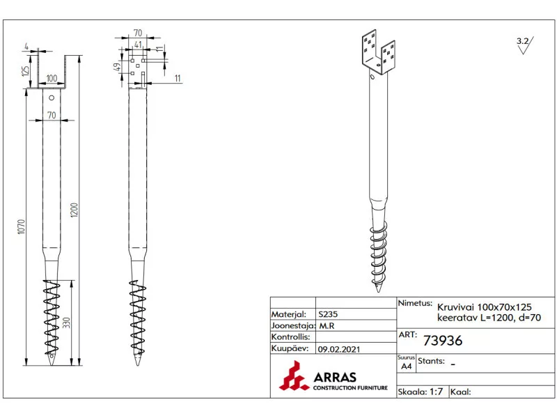 Talajcsavar U - befogással 70x1200 - 100 mm befogás